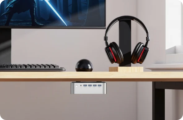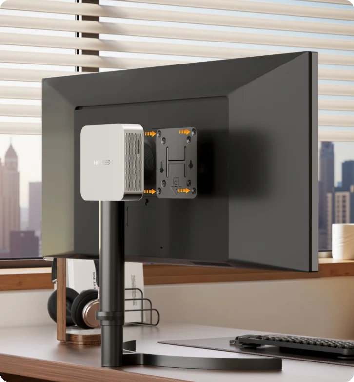 Supports flexible installation behind your monitor, under the desk, or on the wall—perfect for saving space and keeping your setup clean.