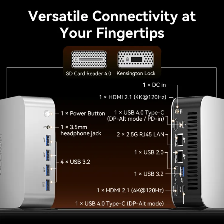 - Rich interfaces: 6 USB ports (including 2 × USB4 ports), SD card reader, worry-free expansion
