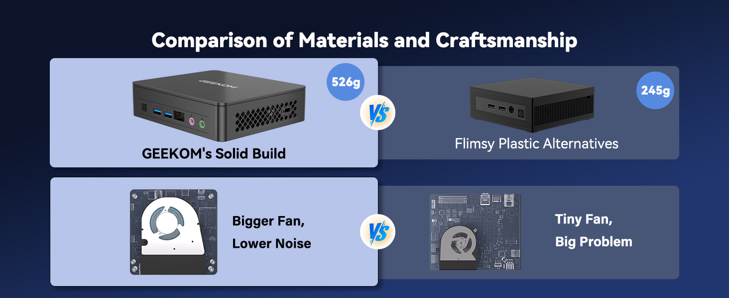 GEEKOM's rubber feet prevent slipping and keep your mini PC securely in place. Injection-molded with precision, they ensure long-term stability on any surface.