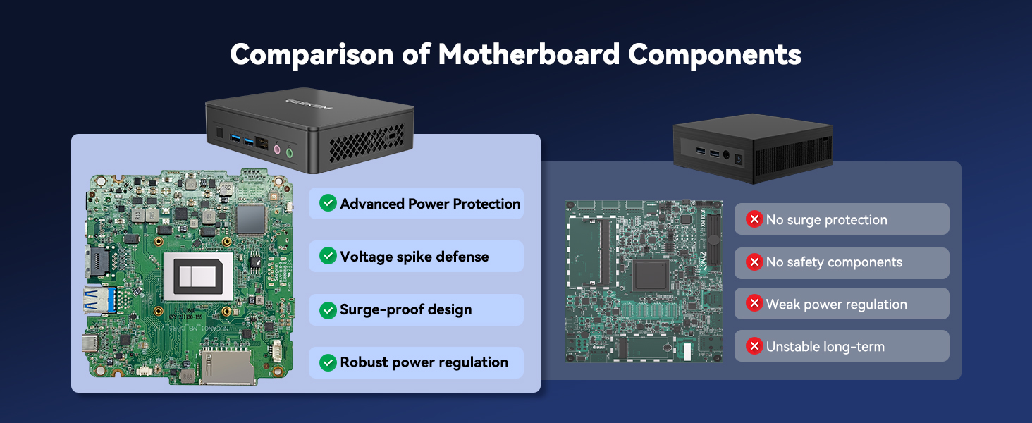 Compared to standard cooling solutions, heat dissipation efficiency is boosted by 50%, ensuring smooth, stable performance even under heavy workloads. The upgraded high-efficiency cooling system delivers powerful airflow to remove heat quickly, keeping your Mini PC cool at all times. Say goodbye to overheating and throttling, and unleash peak performance that lasts.