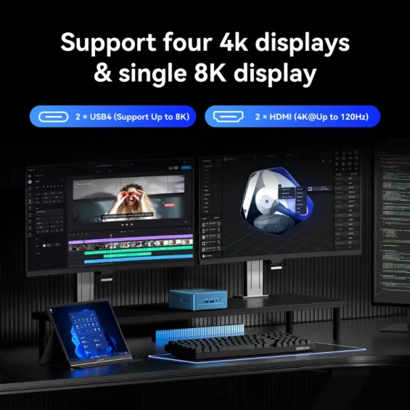 - Supports 4 displays, up to 8K.