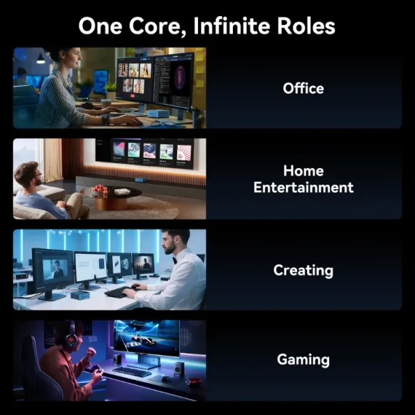 - Versatile USB4: All-in-one – Up to 40Gbps data transfer, 8K video output, connecting an eGPU or external SSD, fast charging, all with a single USB-C cable. More convenient and versatile than OCuLink, no complicated setup or special cables required.