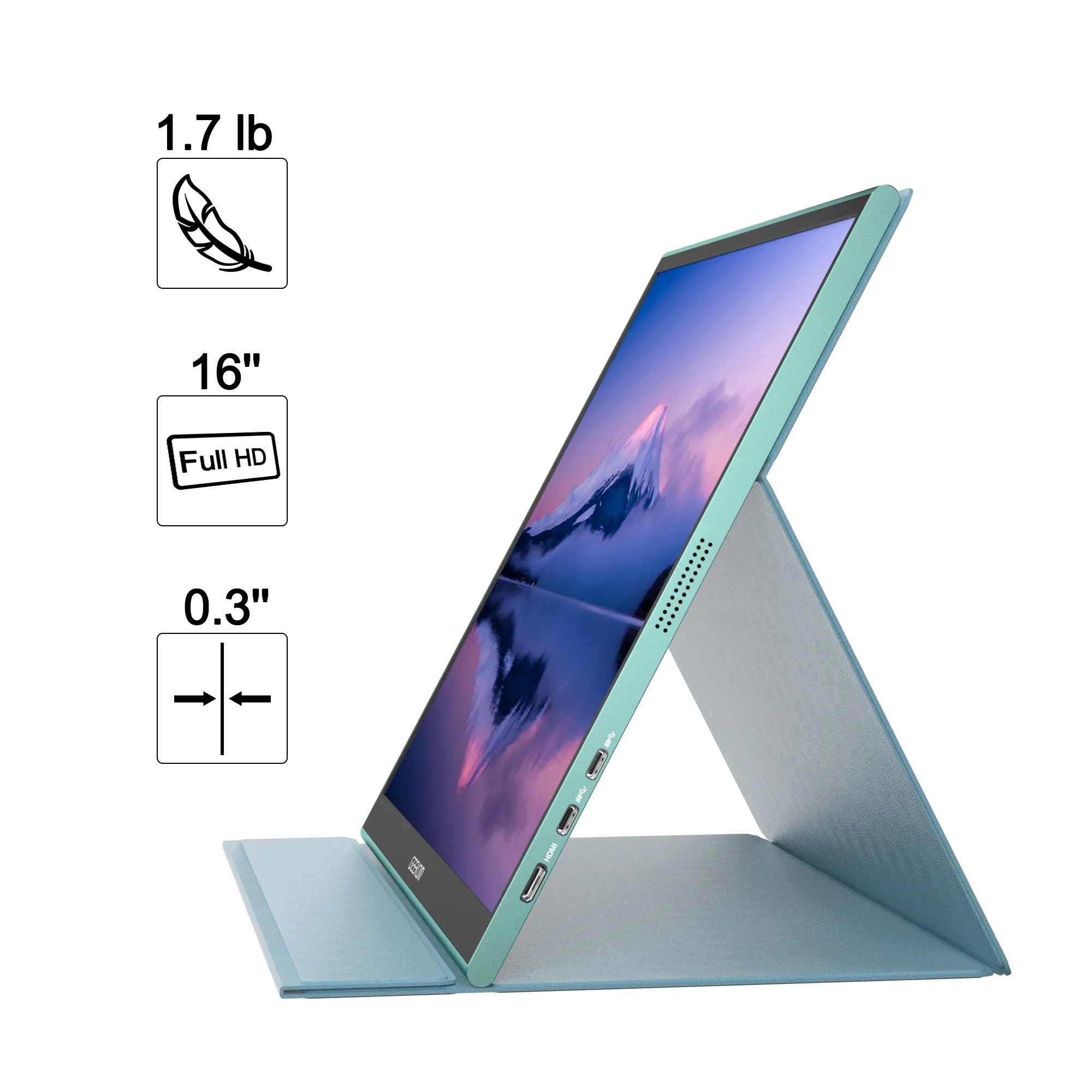 The GEEKOM PM16 Portable Screen comes with a stylish, smart cover made of durable PU leather exterior that is wear-resistant and scratch-proof, providing all-around protection for the screen. Not only that, this smart case also doubles as a stable, foldable stand, with two grooves in the cover base offering more comfortable viewing angles.